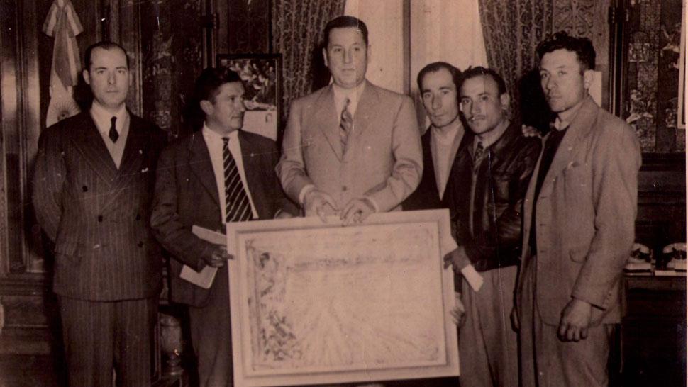 El objetivo era llevarle al presidente un reclamo gremial de la Casa de Estudio. En Buenos Aires fueron recibidos primero por Eva Duarte, quien arregló la tan esperada entrevista. Unos días después los cuatro delegados del gremio consiguieron entrevistarse con Perón, quien atendió personalmente el reclamo. Sentado frente a la histórica foto, don Greco cuenta en primera persona la experiencia del viaje: “De aquí salimos un 25 de junio del 51 en bicicleta. Viajamos para llevar el pergamino para entregarle a Perón en sus manos. El gremio nos mandaba y la misma universidad nos financió el viaje en bicicleta a Buenos Aires de los cuatro muchachos que estamos en la foto: Miguel Arévalo, José Greco (yo), Felix Bernales y Cardozo, de quien no recuerdo su nombre. El viaje nos lleva diez días llegando a Buenos Aires el 5 de julio y ahí hasta que conseguimos la entrevista, no recuerdo bien el día, con Eva Perón. El contacto nos lo había hecho el señor Jiménez, el representante de la Universidad por intermediación de Horacio Descole. Era la primera vez que yo veía en persona a Eva y luego a Perón”.