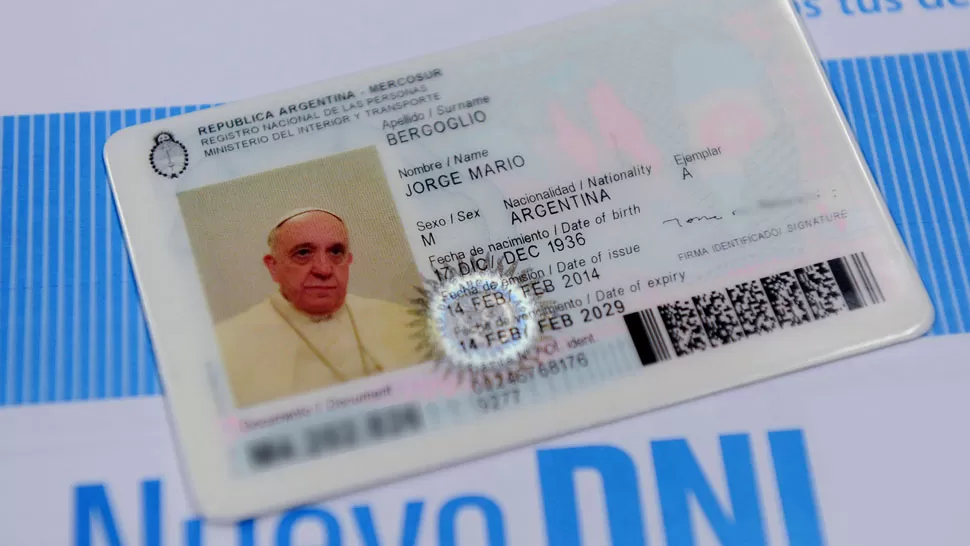 DECISION. El Papa Francisco quiso tener su DNI argentino para sus viajes por el mundo. TELAM