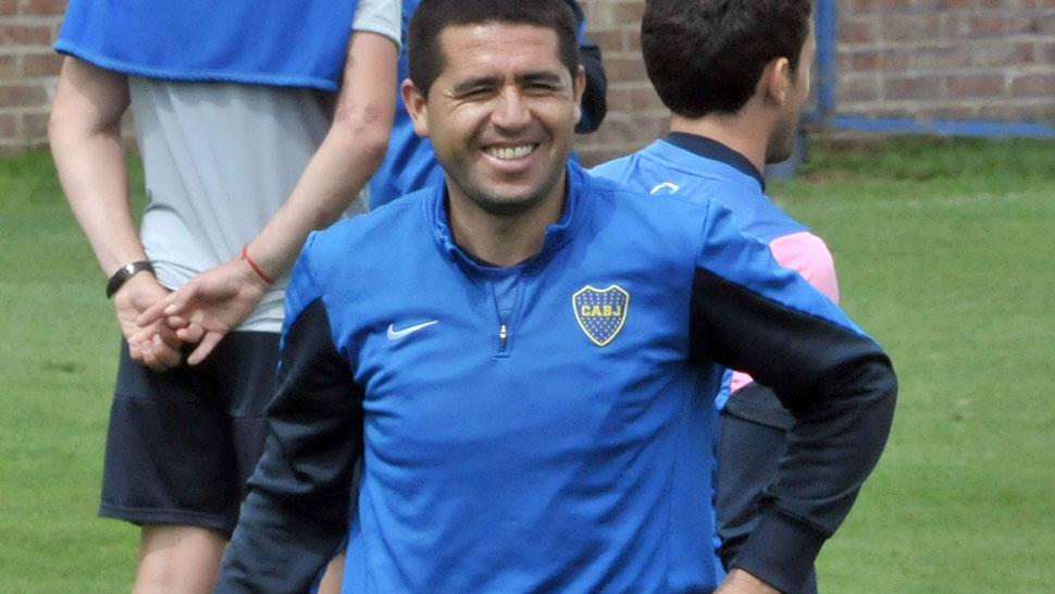 SONRIENTE. Riquelme, durante un entrenamiento de Boca. TELAM SONRIENTE. Riquelme, durante un entrenamiento de Boca. TELAM