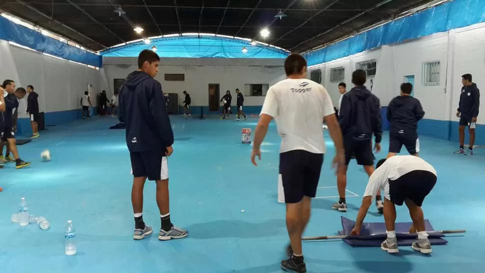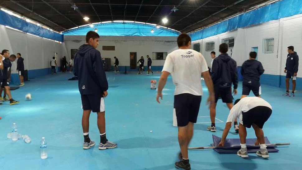 Así fue como el director técnico Diego Erroz se las tuvo que ingeniar para diagramar una jornada de trabajo en la ex cancha de bochas, ubicada detrás del sector 3 del Monumental.