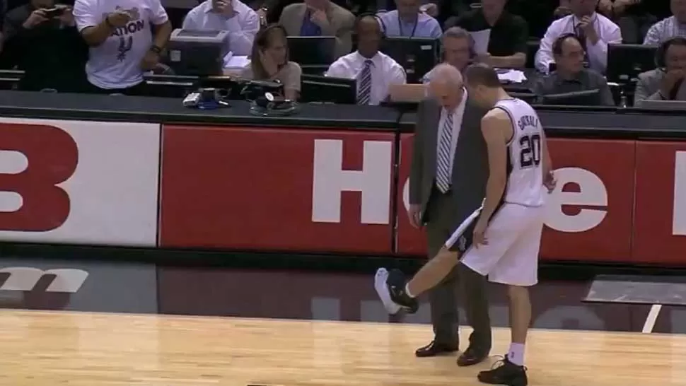 Se terminaba el segundo cuarto cuando Emanuel Ginóbili intentó marcar a un rival y una de sus zapatillas lo dejó "a pata". Literalmente. El pie izquierdo de "Manu" quedó en medias contra el piso mientras el calzado defondado era sujetado por los cordones. Sorprendido, el argentino se fue hasta el banco de suplentes y recibió la incrédula mirada de su entrenador Gregg Popovich.