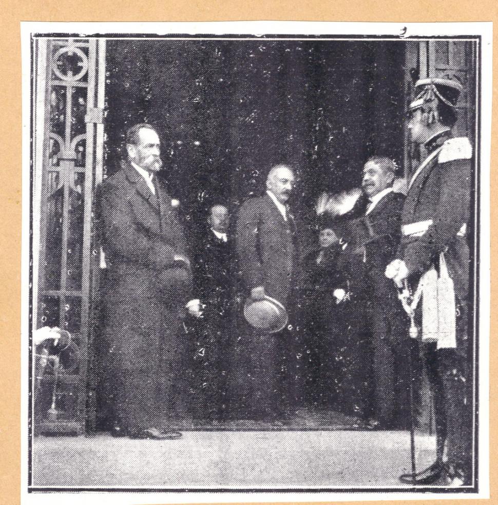 VISITA DE SAENZ PEÑA. El presidente que quería celebrar el Centenario en Tucumán, aparece en su visita de 1912, entre el gobernador José Frías Silva (derecha) y el senador Brígido Terán. la gaceta / archivo