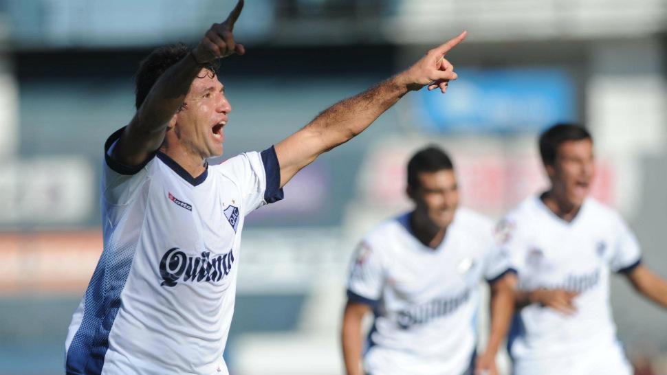 FESTEJO CERVECERO. El volante Sebastián "Chirola" Romero celebra el gol que anotó a los 17 minutos de la primera etapa, que le dio el triunfo a Quilmes sobre Tigre. TELAM