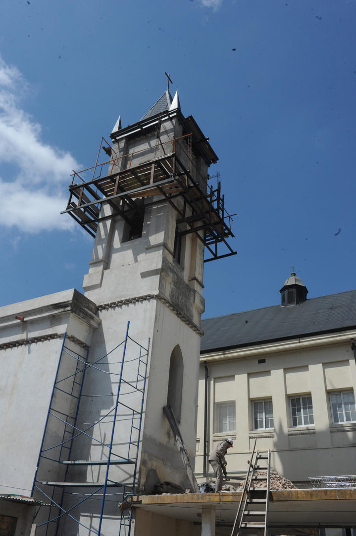 La primera etapa de las refacciones está casi terminada y se trató, en realidad, de una “terapia intensiva” de su estructura. “Cuando nos hicimos cargo del directorio del hospital, hace unos dos años, toda la estructura del campanario estaba apuntalada con hierros porque estaba a punto de caerse. En verdad que daba miedo pasar por ahí”, contó Javier Zayun, gerente administrativo del hospital. Además, en esta etapa le devolvieron la altura original al campanario, que en algún momento fue “recortado”.