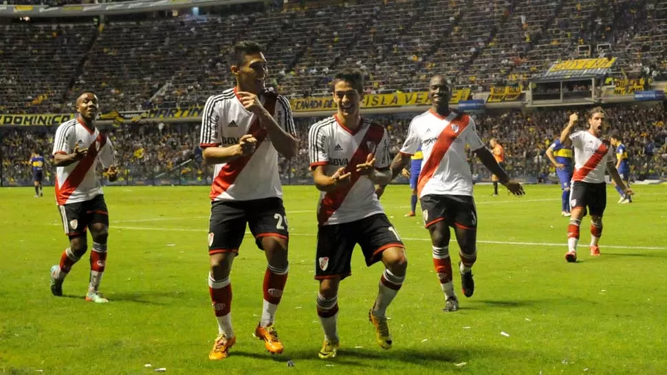 Sin el apoyo de sus hinchas, los jugadores de River inflaron el pecho y se llevaron una victoria histórica desde La Bombonera, donde no ganaban desde el 16 de mayo de 2004. Desde el comienzo tuvieron que aguantar, a solas, las cargadas de los hinchas "Xeneizes", pero poco a poco se las arreglaron para terminar celebrando más que tres puntos en el centro de la cancha. Esta es una selección de los mejores momentos del superclásico que puso a los "Millonarios" otra vez en la pelea por el título del Torneo Final 2014.