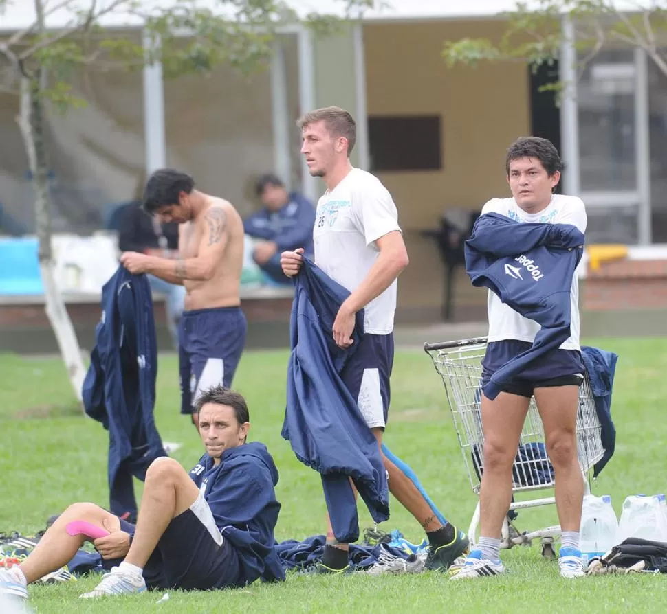 PAUSA. Barrado, Sbuttoni, Rodríguez y Jara (fondo), descansan tras la última sesión de entrenamiento del “decano”. la gaceta / foto de héctor peralta