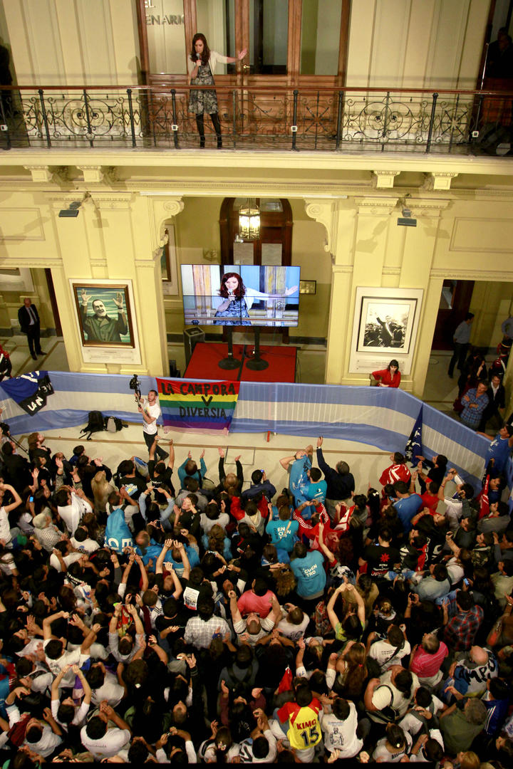 DESDE EL BALCÓN. Cristina habló a los jóvenes que asistieron al acto. dyn