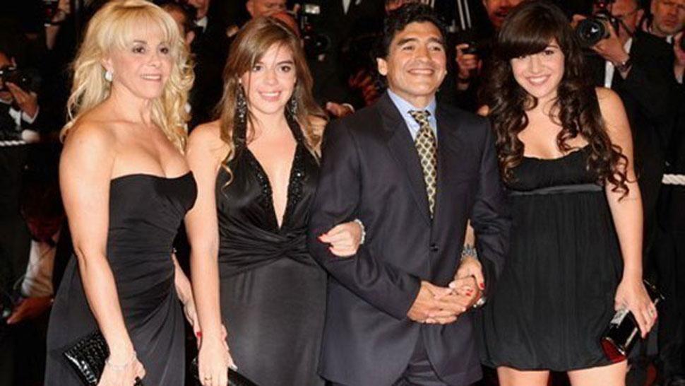 JUNTOS. Maradona, al lado de sus hijas y su ex esposa. FOTO TOMADA DE ELBALONROSA.COM JUNTOS. Maradona, al lado de sus hijas y su ex esposa. FOTO TOMADA DE ELBALONROSA.COM