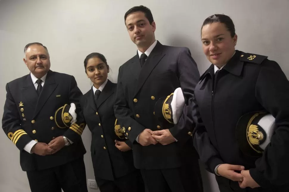 MARINOS. El capitán Martín y los jóvenes Castellanos, Roqué y Tognozzi. la gaceta / foto de diego aráoz