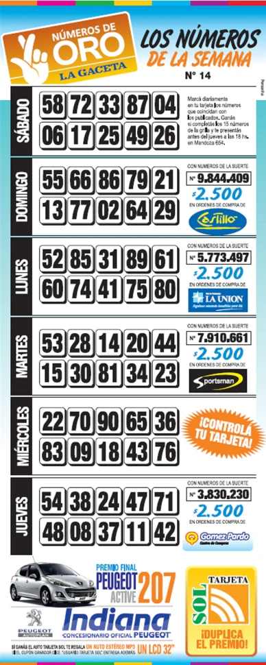 Como todas las semanas, aquellos lectores que completen los 15 números de una de las grillas de su tarjeta de Números de Oro deben presentarse por calle Mendoza 654 hasta este jueves a las 18, que cierra la semana número 14 de Números de Oro. En caso de que la tarjeta ganadora tenga la leyenda Usuario Tarjeta Sol, duplica el premio.