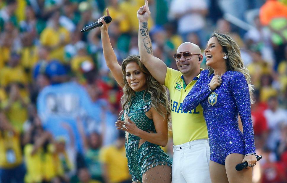 SAN PABLO, Brasil.- Luego de algunas idas y vueltas, la cantante Jennifer López estuvo presente en la ceremonia inaugural del Mundial de Brasil 2014 y brilló junto a Claudia Leitte y Pittbull, las estrellas en San Pablo. El trío cerró la fiesta de apertura entonando la canción oficial del torneo, que sonó algo distorsionada en el abierto estadio de Itaquerao.