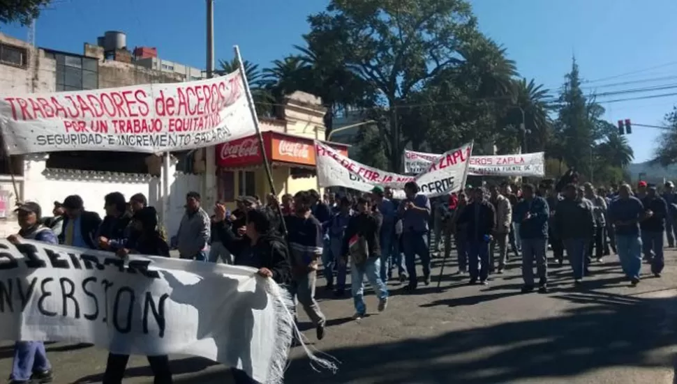 SAN SALVADOR DE JUJUY.- Los trabajadores de Acero Zapla, en la localidad de Palpalá, manifestaron ayer frente a la Casa de Gobierno provincial, al cumplirse 30 días del conflicto con la empresa que, por su parte, advirtió que está en riesgo su continuidad, que se perdieron contratos por la falta de producción y que si no hay una solución se suspender personal, informó la agencia DyN.