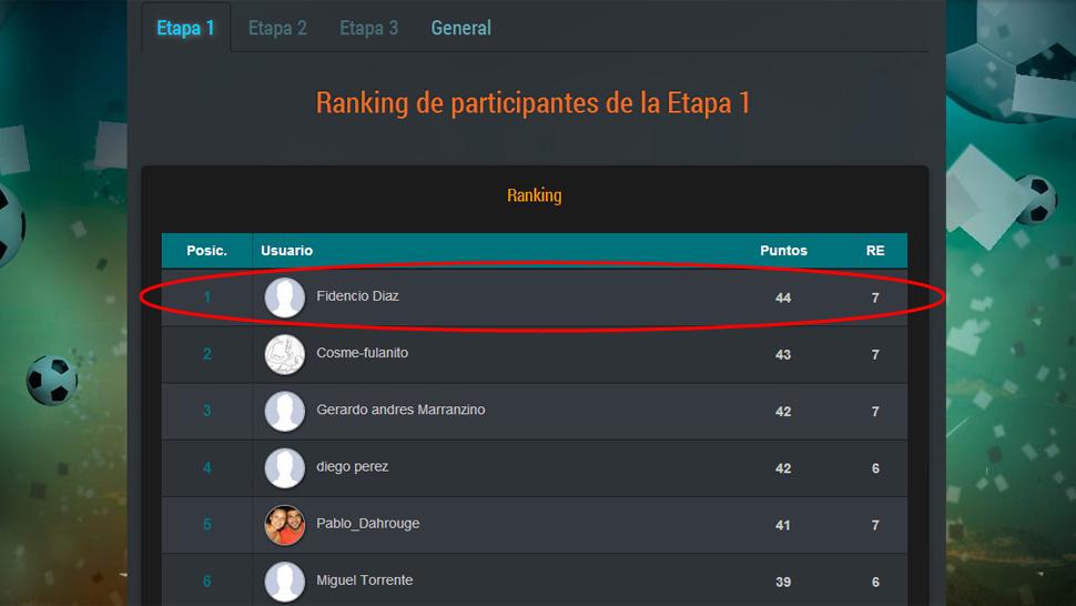 Los buenos pronósticos consagraron a Fidencio Díaz como ganador de la primera etapa de "Palpitando el Mundial", después de que a lo largo de 23 partidos acumulara los 44 puntos que le permitieron aventajar por apenas uno a sus máximos competidores.