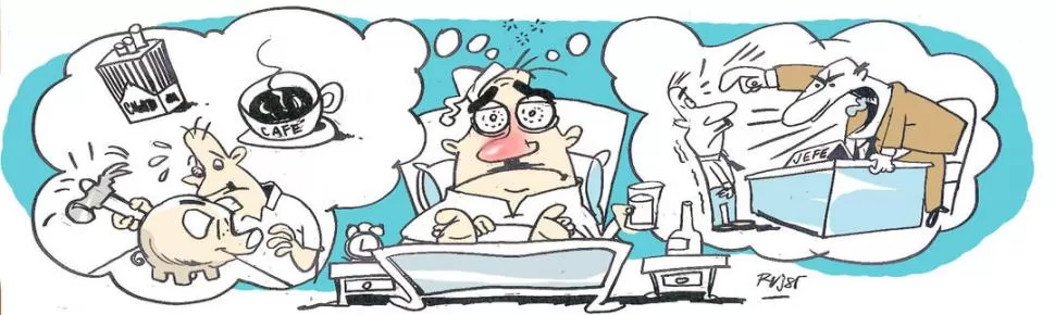 Los pacientes con insomnio que atendió la psicóloga Duarte asociaban el problema con preocupaciones laborales y económicas. “Se sentían sobreexigidos -explica-, no podían cortar la jornada laboral y llevaban el tema a la casa. Ahí seguían con lo que no habían terminado, con lo que el jefe les exigía, con la presentación que debían hacer al día siguiente...”, relata Duarte.