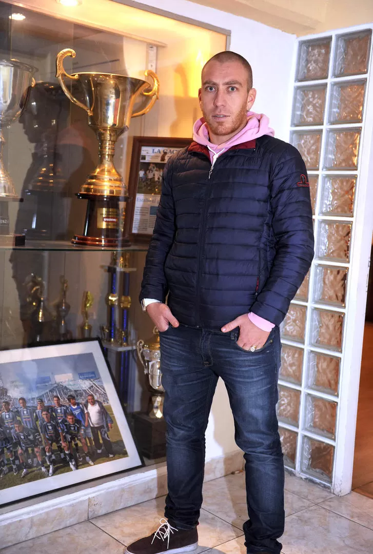 CONTENTO. El ex Quilmes posa en las oficinas del Monumental, luego de firmar.