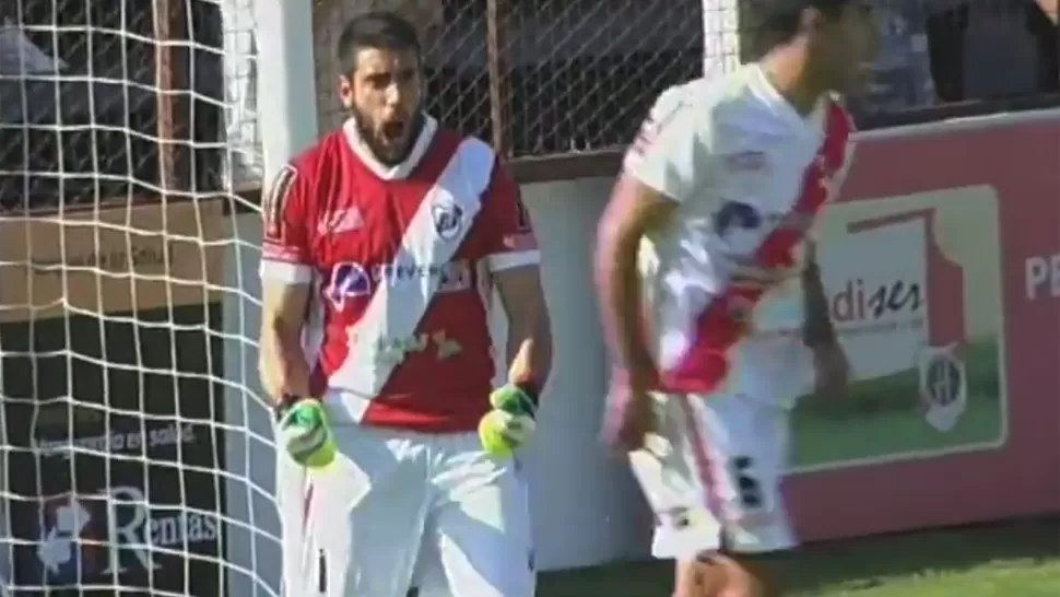 A los tres minutos del primer tiempo, el arquero Federico Cosentino le atajó un tiro penal al delantero del "Lobo" Osvaldo Miranda.