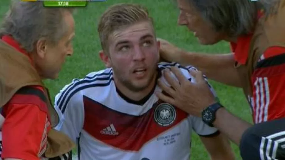 "¿ESTA ES LA FINAL?" Kramer preocupó al cuerpo médico alemán y debió salir de la cancha. CAPTURA DE IMAGEN