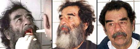 NUEVA IMAGEN. Saddam Hussein tenía una profusa barba y estaba despeinado. Pero fue reconocido a pesar de la nueva apariencia de hombre improlijo y pobre. Un médico lo revisó y, luego fue afeitado.