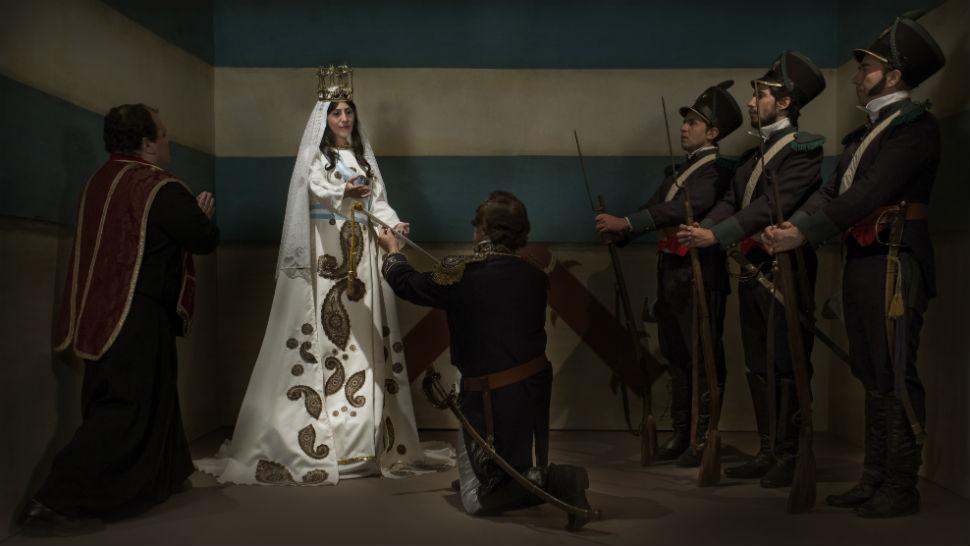La primera foto, una de las 12 imágenes que tendrá el calendario, salió a la luz en las últimas horas y se trata de la entrega del bastón de mando por parte de Belgrano a la Virgen de la Merced, interpretada por la cantante tucumana Agustina Vita, en conmemoración por el 24 de septiembre.