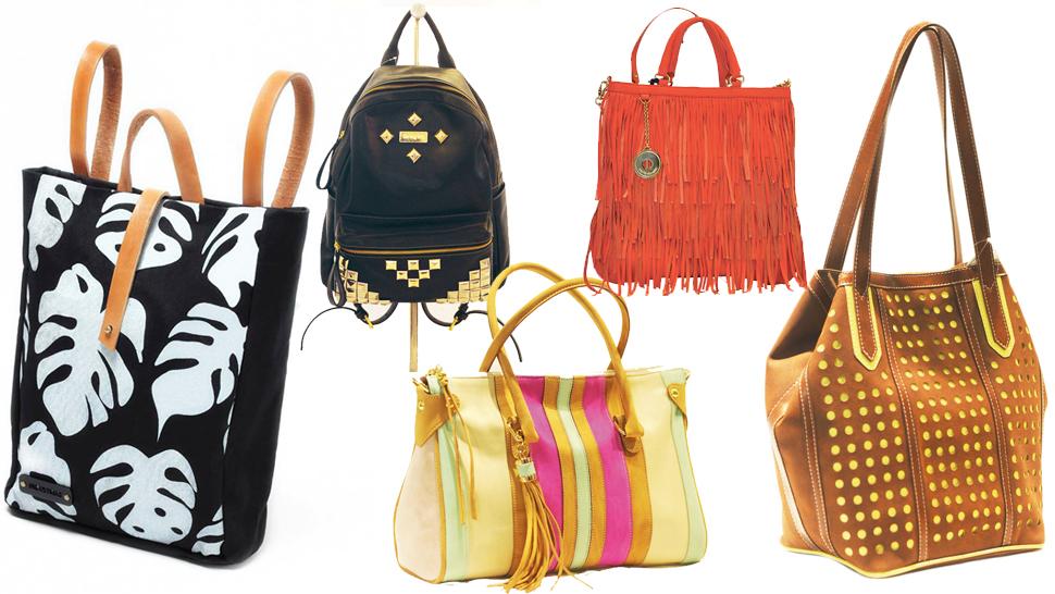 CLÁSICA. Cartera de cuero, con rayas multicolores en suela, verde agua, natural y fucsia, $1.690 (Noraly).