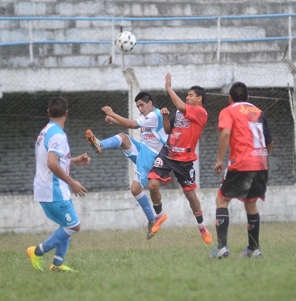 ARRIBA. Horacio Fernández de Amalia y un defensor de Deportivo Aguilares.  ARRIBA. Horacio Fernández de Amalia y un defensor de Deportivo Aguilares.