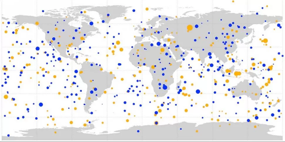 Se muestran en un mapa confeccionado con datos oficiales de la NASA.