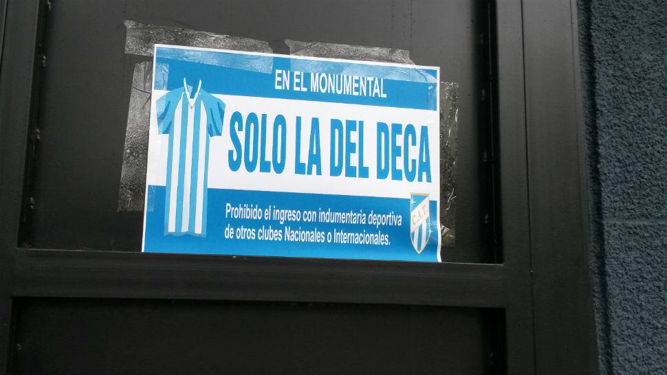 "En el Monumental, solo la del deca: Prohibido el ingreso con indumentaria de otos clubes Nacionales o Internacionales", es la frase que imprimieron en un afiche que primeron divulgaron en Twitter y Facebook y después pegaron en distintos sectores del lugar donde se vendieron las entradas.