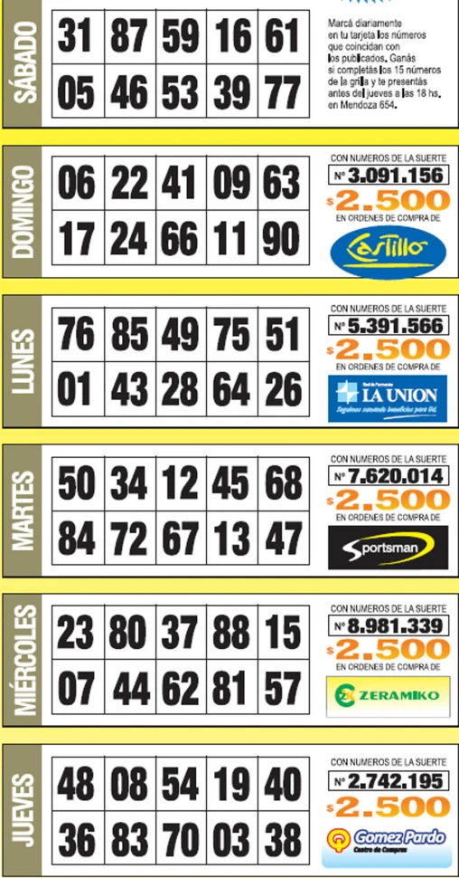 Controlá tu tarjeta. Podés ser uno de los ganadores del jugoso pozo.