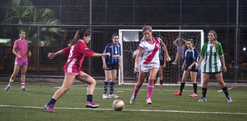 Empieza el partido. La jaula de tela metálica y césped sintético se llena de fucsias, amarillos y verdes fosforescentes. Son 12 chicas que han llegado unos minutos antes para tener las conversaciones de rigor: hijos, casa, laburo, cansancio, humedad. Pero a las 21.05, después de que a un equipo de niños le ha sonado la campana del turno cumplido, ellas están adentro de la cancha. Van a jugar al fútbol por segundo martes consecutivo y están entusiasmadas. Los dos equipos se arman rápidamente, no hay mayores preferencias. Tampoco hay precalentamiento. La pelota comienza a rodar y menos de un minuto después, ya hay dos disparos al arco. Desde la portería, una voz chillona pregunta: “¿ahora tengo que sacar yo?” Gol. Es el primero de los 10 que llegarán al cabo de la hora que dura el alquiler de la cancha: dos para un equipo, ocho para el otro. Los festejos son tibios, siempre agudos. Los enojos, esporádicos. “Susú” es la que se irrita. No le gusta perder. Para nada.
