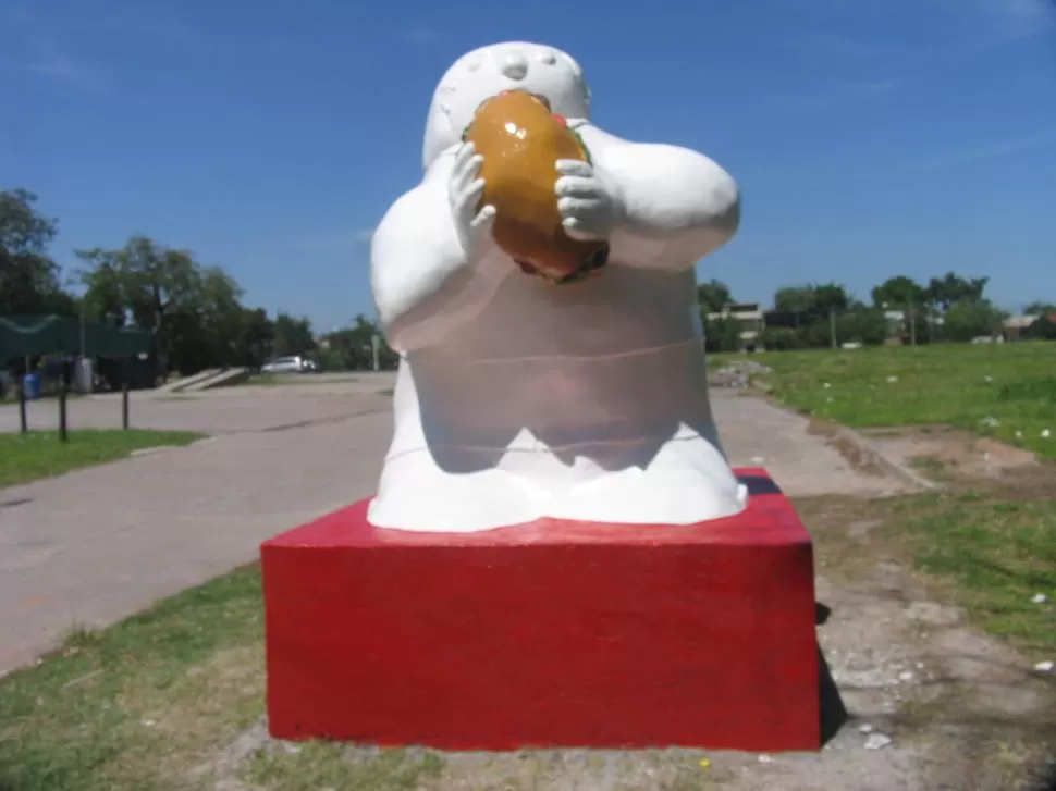 La obra sufrió un acto de vandalismo en los brazos del personaje y en el mismo “sánguche”. Ocurrió en la esquina donde estaba emplazado, a pocos metros de las avenidas Mate de Luna y Pellegrini. “Hay partes que fueron destruidas de una manera brutal, algo que no se hace en pocos minutos. En esa esquina hay una cámara de seguridad, pero hasta ahora nadie nos dio explicaciones ni sabemos si se está investigando”, se quejó Sandro Pereira.