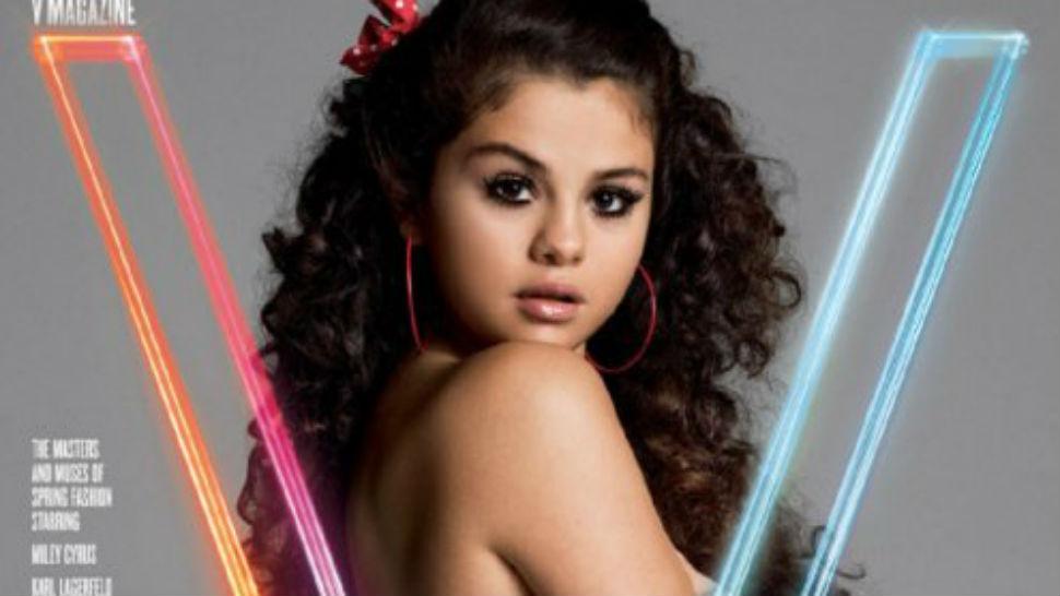 ESTADOS UNIDOS.- La joven Selena Gomez, de 22 años, decidió aparecer en topless en la reciente portada de la revista V. Allí se la ve luciendo unos shorts, unos aros rojos y un listón con puntos blancos decorando su pelo. El sexy tatuaje en la espalda se asoma en la toma, mientras ella nos mira con los ojos bien abiertos y los labios pintados.