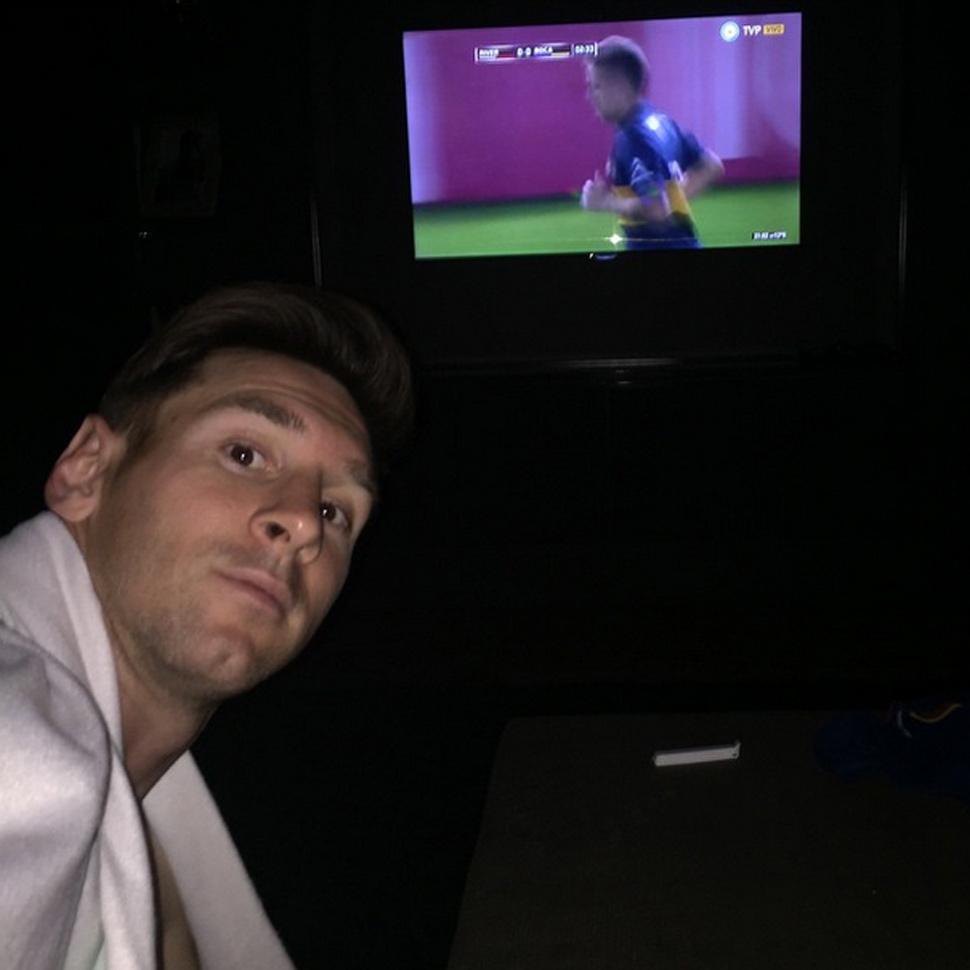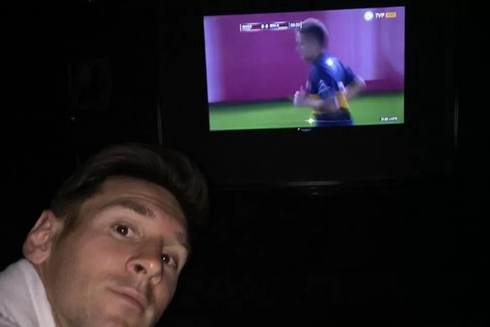 cuenta de Instagram una foto viendo el choque entre River y Boca, en el partido de ida por los octavos de final de la Copa Libertadores. Cabe destacar que en España hay cinco horas más, por lo que el partido arrancó a la 1 de la madrugada y finalizará alrededor de las 3.