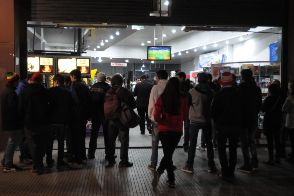 Un drugstore ubicado en San Martín al 400 fue el lugar de “paso” elegido por muchos. “La idea es ver el primer tiempo acá y luego voy al trabajo”, contó Franco Ammar. Juan Ramón Roldán salió de su trabajo en la zona céntrica y detuvo su moto para ver el partido. “Siempre nos juntamos acá con otros chicos que aún no llegaron”, dijo el hincha del “millo”.