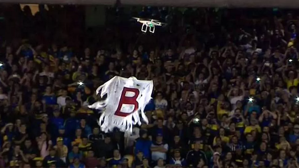 Un drone con el "fantasma de la B" sobrevoló La Bombonera