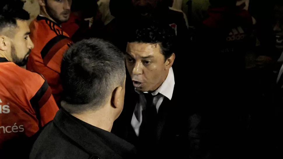 SACADO. Gallardo discute con gente de la organización instantes después de la agresión a sus jugadores. DYN SACADO. Gallardo discute con gente de la organización instantes después de la agresión a sus jugadores. DYN