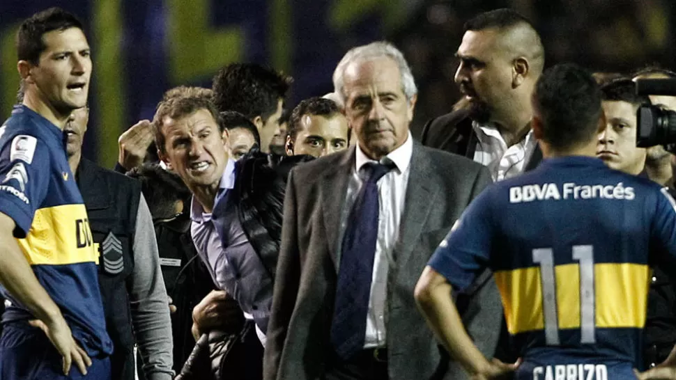 MOMENTO DE FURIA. Arruabarrena se enojó con D'Onofrio cuando ingresó a la cancha de Boca.