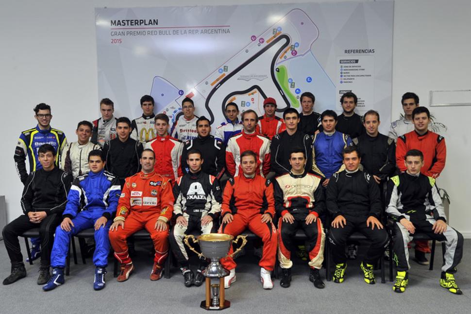 FOTO CLÁSICA. Aquí se ven a 26 de los 28 pilotos que se presentaron a competir en el trazado santiagueño. Entre ellos aparecen los cuatro tucumanos. foto de frinterprovincial.com