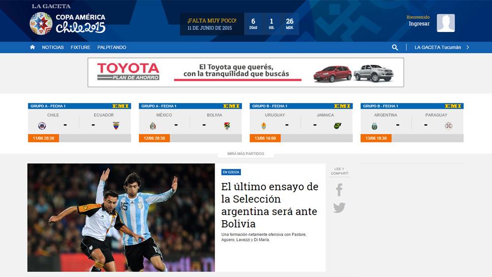 Copa América Chile 2015. Con un micrositio exclusivo, LA GACETA.com ofrece a sus lectores una cobertura exclusiva en la que podrán encontrar todas las noticias,