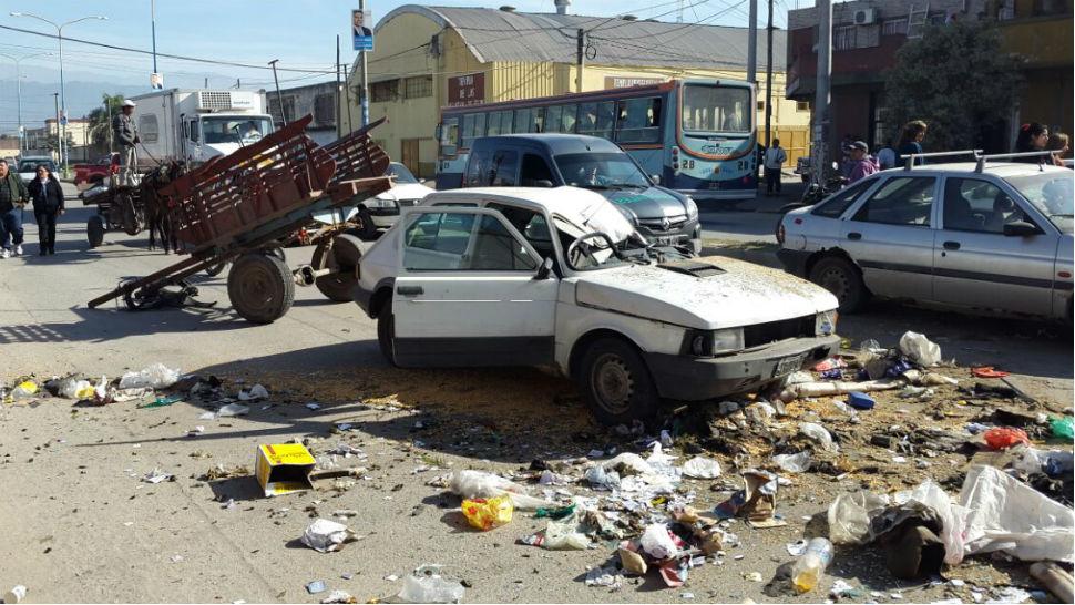 En Tucumán, la circulación de vehículos a tracción a sangre y la de los caballos sueltos en la vía pública sigue siendo un problema. Y un claro ejemplo fue lo que sucedió hoy en la avenida Independencia al 2.300, donde un hombre sufrió un violento accidente con su auto al colisionar contra un animal equino.