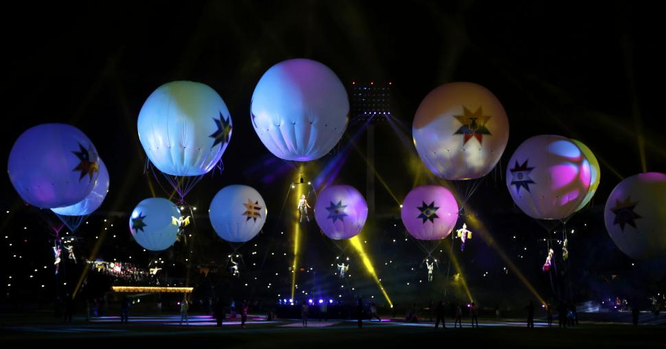 Luego de una cuenta regresiva, comenzó a latir “El corazón del fútbol”, un innovador espectáculo de veinte minutos cuyo objetivo era “poner a Santiago en el mapa de las ceremonias mundiales”.