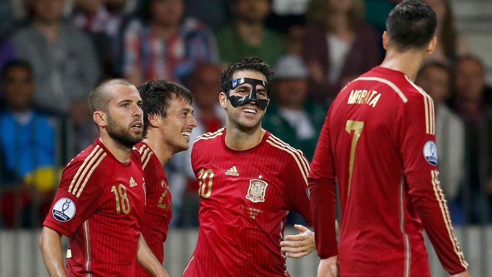 Piqué y Jordi Alba; Césc Fábregas (Isco), Busquets, Santi Cazorla; David
