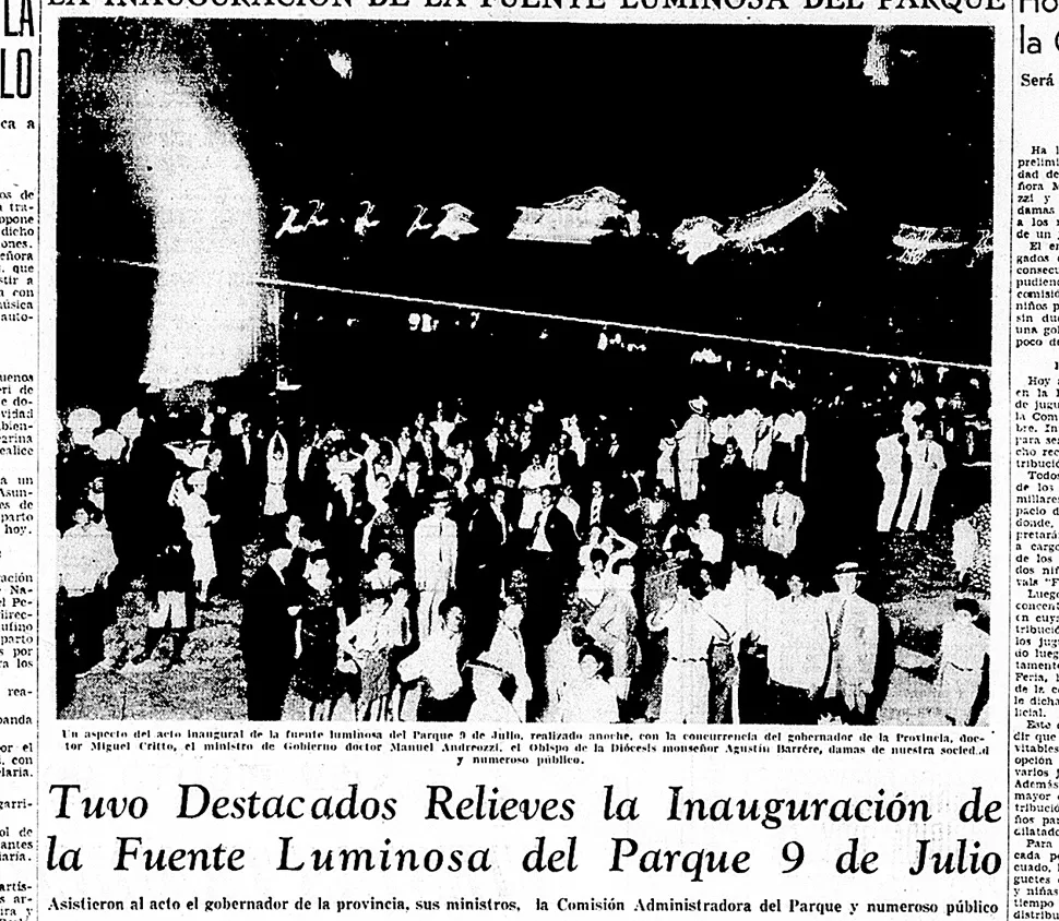 El sábado 23 de diciembre de 1939, San Miguel de Tucumán incorporaba una nueva atracción al parque 9 de Julio: una fuente luminosa, que se incorporaba al reloj floral, a la pérgola y demás obras. Aquel conjunto hacía del paseo un lugar de visita obligado para las familias tucumanas.