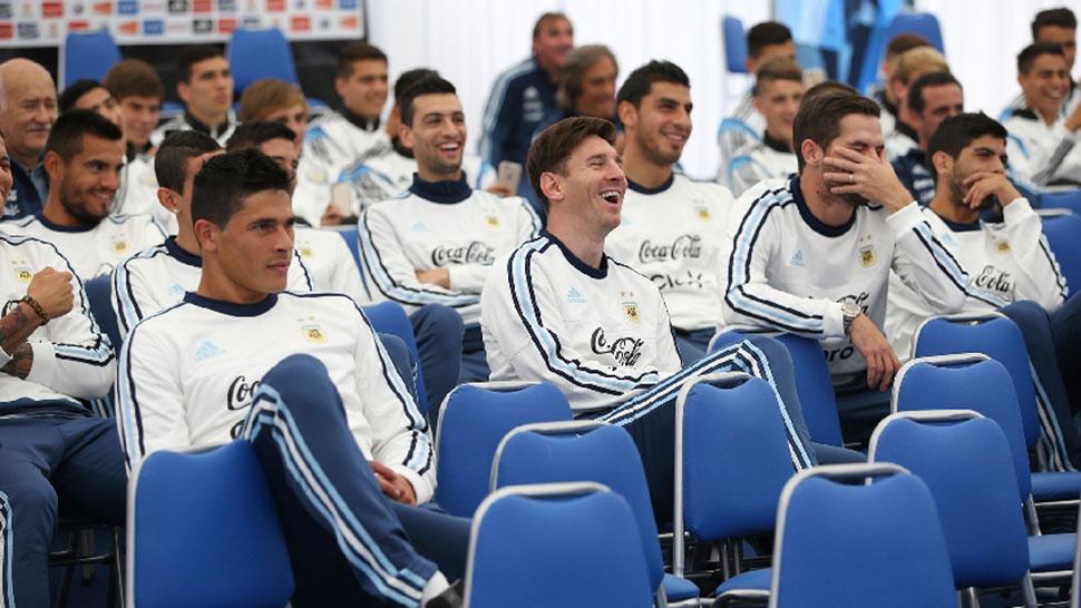 PURAS RISAS. Messi y compañía disfrutaron de un show único de Yayo. (AFA.COM.AR)