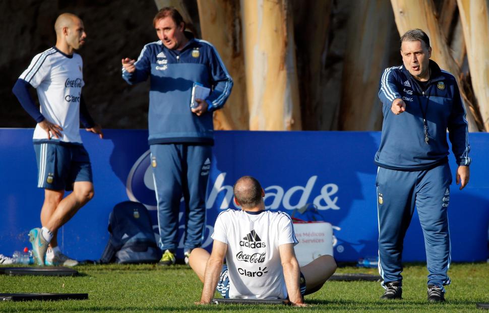 Martino tendría decidido mantener su táctica ofensiva ante Colombia, con algunas precauciones más a la hora de recuperar el balón y mucho ensayo en la definición para incrementar la efectividad de la poderosa delantera “albiceleste”. El entrenador mantuvo la formación habitual pero decidió entrenar una salida rápida ante la presión que podría realizar Colombia, con mayor profundidad y velocidad en los pases. La selección argentina entrenará hoy a puertas cerradas en el club Everton.