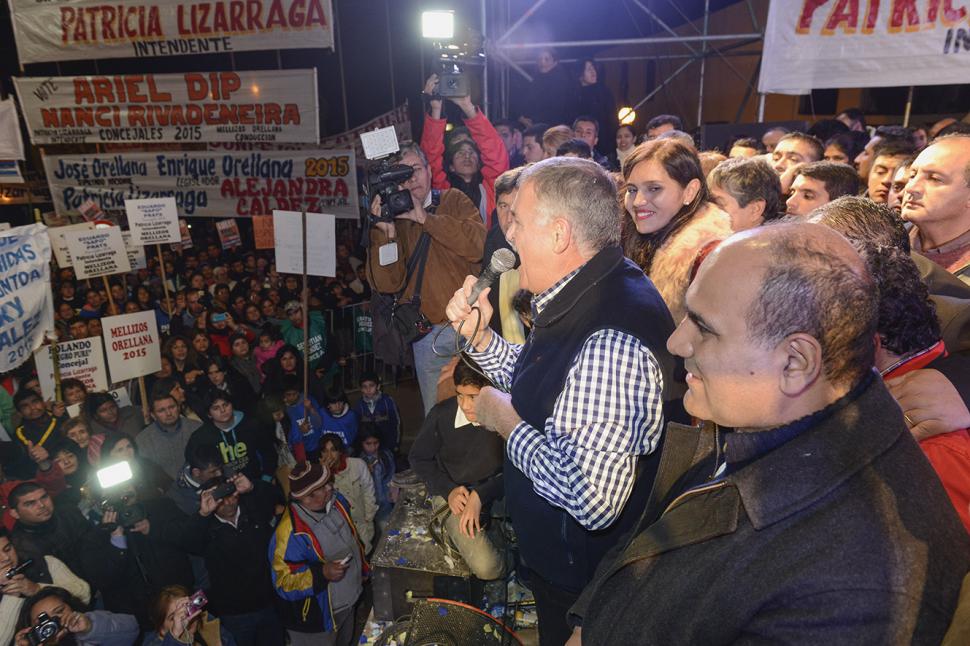 Frente a su propia versión del Cabildo y rodeados de una multitud, los “Mellizos” José y Enrique Orellana ratificaron el jueves por la noche su pertenencia al alperovichismo y lanzaron sus candidaturas a diputado nacional (encabeza la lista oficial) y a legislador (mediante un acople), respectivamente. También presentaron la postulación a la intendencia de Patricia Lizárraga, esposa de Enrique. Los ex massistas estuvieron acompañados por la fórmula del Frente para la Victoria (FpV), conformada por el vicegobernador Juan Manzur y el ministro del Interior, Osvaldo Jaldo.