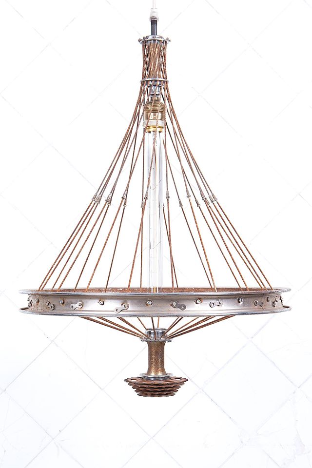 El primer año y medio trabajó alquilando y reparando todo tipo de bicicletas, tuneando algunas y sacando de apuro a otras. “Cuando surgió la idea de poner la tienda pensé en ornamentarla con partes de bicicletas viejas que acumulaba en mi casa; de ahí surgió mi primera lámpara de reciclado únicamente con partes de bicis. Hice las primeras cinco y una vez inaugurado “El Ciclo” mis primeros clientes me compraron la primera y la llevaron a Australia”, comenta el tucumano. De ahí empezó a hacer más y más en su escaso tiempo libre. Tan bien le fue que dejó de reparar bicicletas: ahora alquila, hace y vende sus lámparas y otras piezas de reciclado de partes de bicicletas. Y a principio de este año presentó sus obras en el Festival Internacional de Reciclaje Artístico de Barcelona, donde ganó el primer premio del festival.