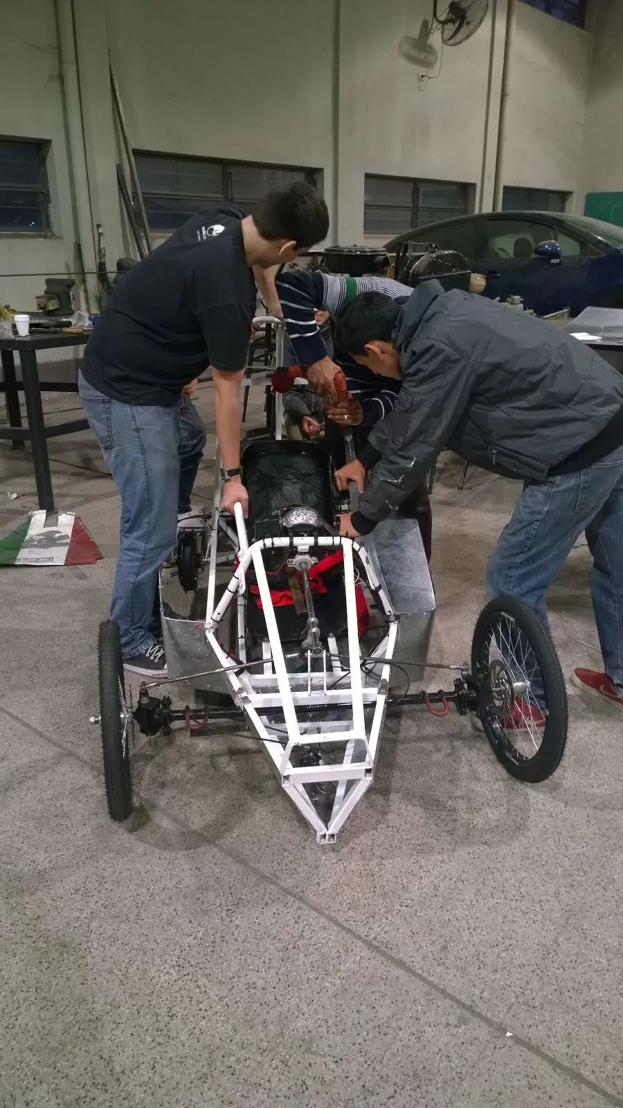 CONCENTRADOS. Chicos de la ENET 2 trabajan en detalles del coche. foto de luciano dulor