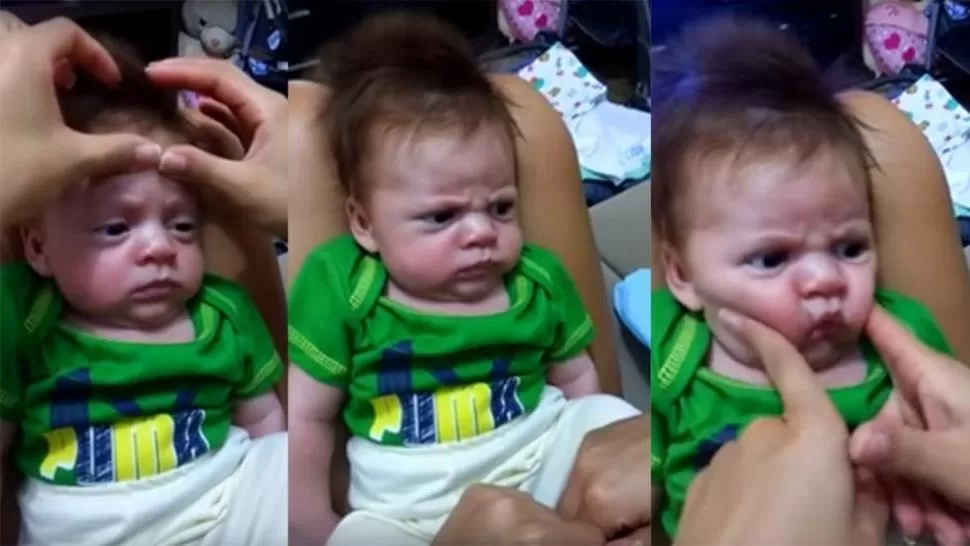 No se sabe el motivo que enfureció a este pequeño, pero por su actitud parece que tiene un carácter muy intenso. Los padres se esfuerzan por dibujarle una sonrisa usando las manos, pero él se mantiene firme, según el clip de YouTube.