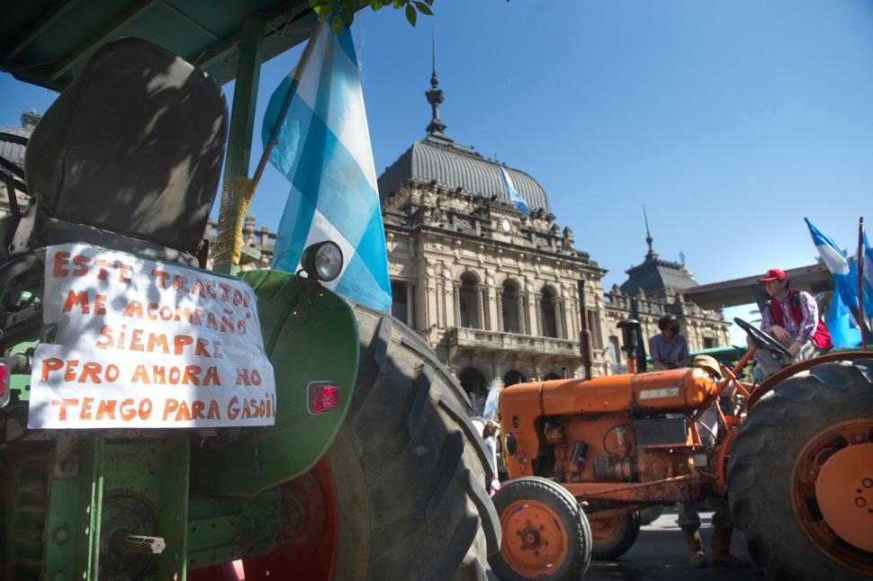Los agricultores, denominados autoconvocados, se trasladaron desde diferentes puntos del interior provincial hasta las puertas del edificio del Poder Ejecutivo (PE), en un “tractorazo” similar al realizado por sus pares de Entre Ríos días atrás. Acompañados por la Sociedad Rural de Tucumán (SRT) y por cañeros del este (también atraviesan una crisis), ingresaron a la capital tucumana en los vehículos pesados y en camionetas a las 4 de la madrugada, y se concentraron en el paseo público. Allí armaron, además, un campamento para exponer la crisis del agro ante el Ejecutivo, como sucedió hace más de dos semanas.