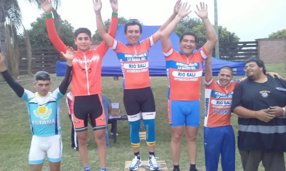 PODIO. El sanjuanino Recabarren (centro) se adjudicó la clasificación general. FOTO DE ASOCIACIÓN CILISTA TUCUMANO PODIO. El sanjuanino Recabarren (centro) se adjudicó la clasificación general. FOTO DE ASOCIACIÓN CILISTA TUCUMANO